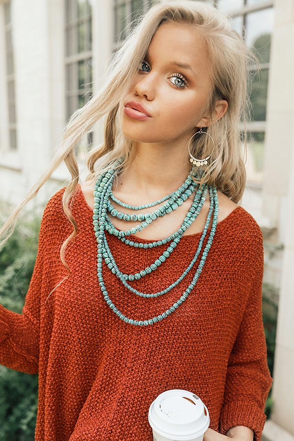 Long Lost Love Distressed Layered Necklace In Ocean Wave