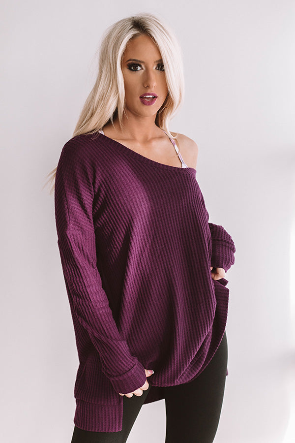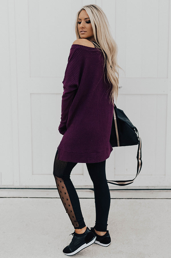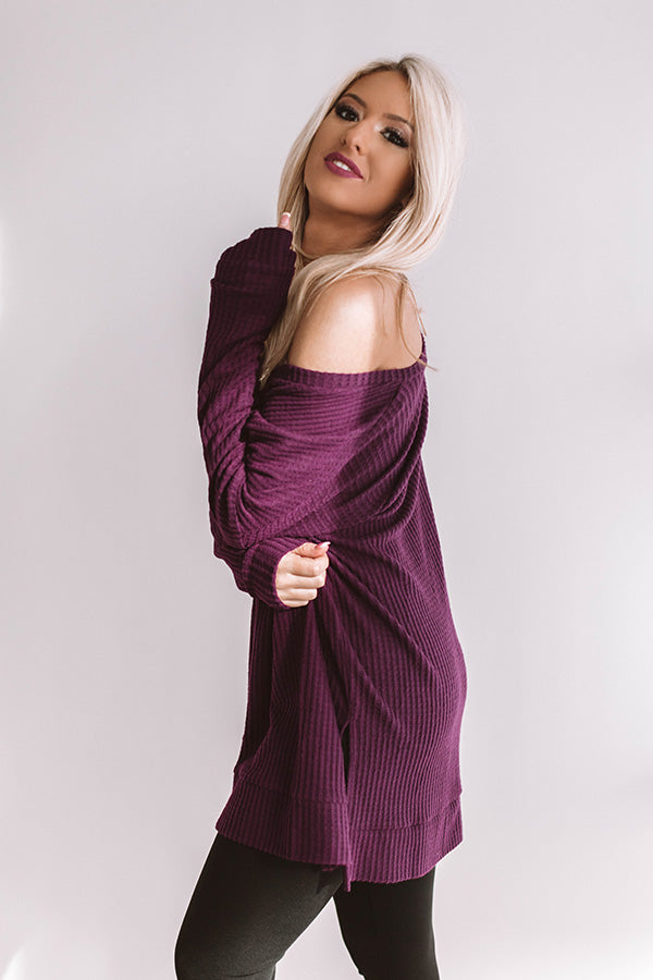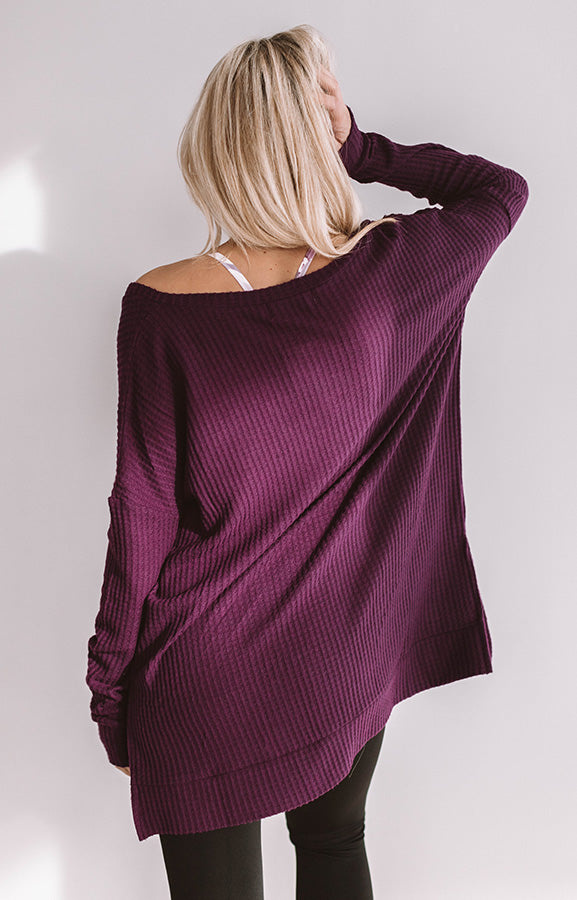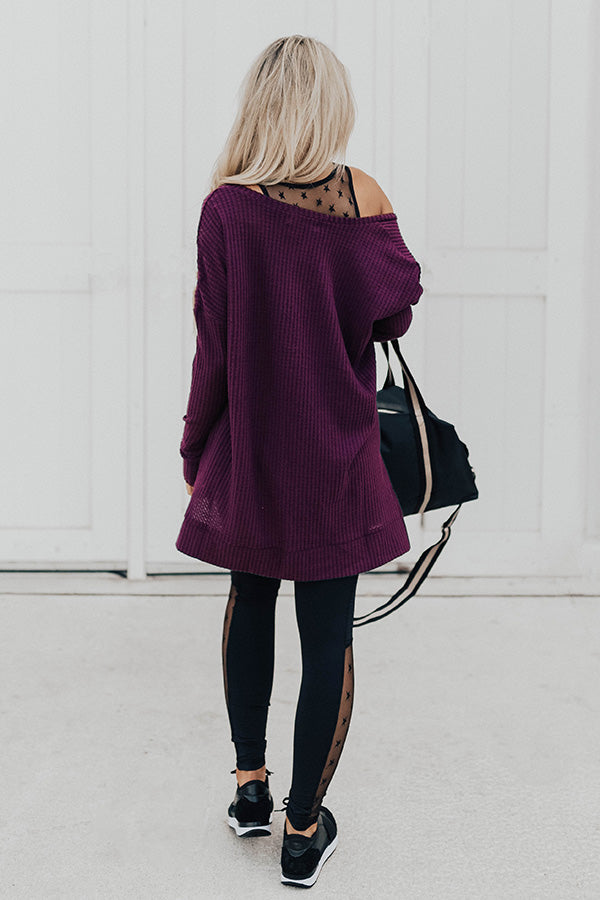 Long Weekend Waffle Knit Tunic In Purple