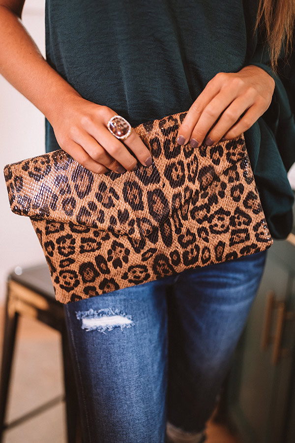 Let your accessory style run wild with our stunning "Looking For Love" clutch featuring sleek material patterned with a bold black and brown leopard print and a spacious rectangular pouch with an envelope flap closure and additional inside pockets!