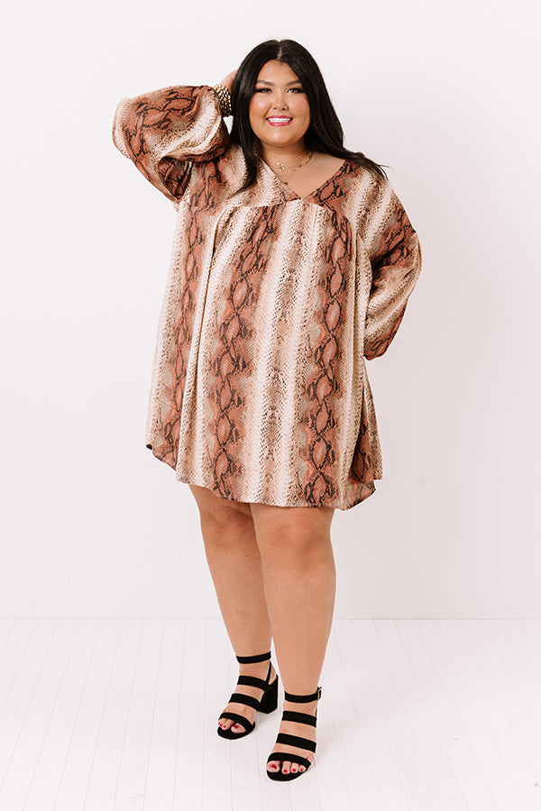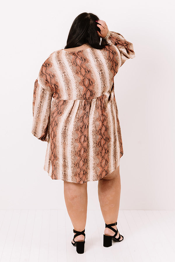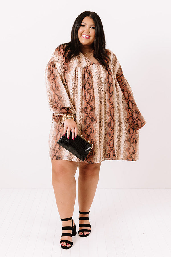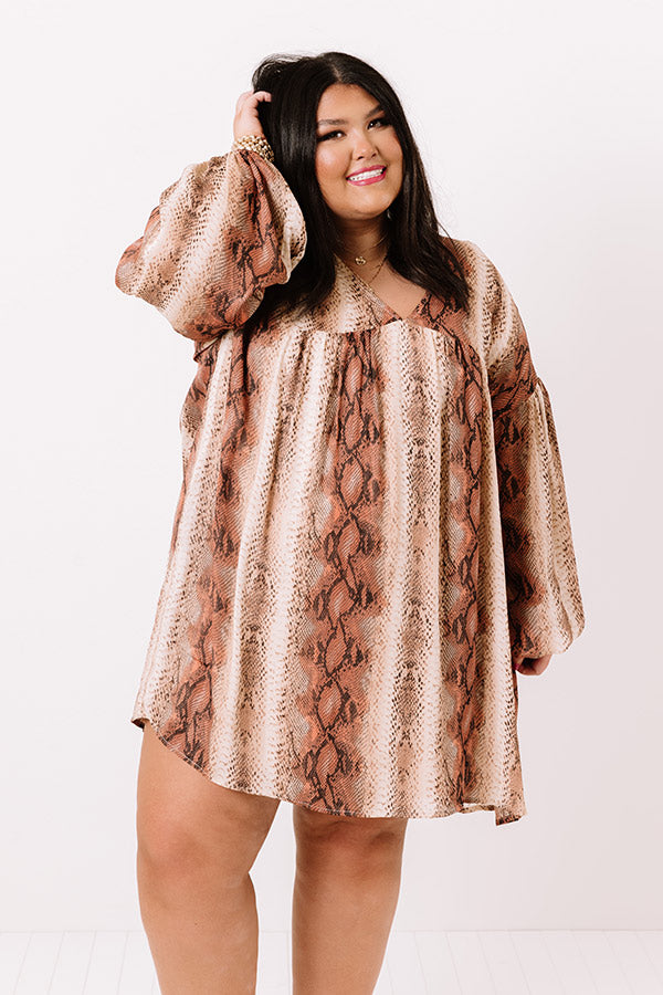 Looking For Love Snake Print Babydoll Dress In Brown Curves