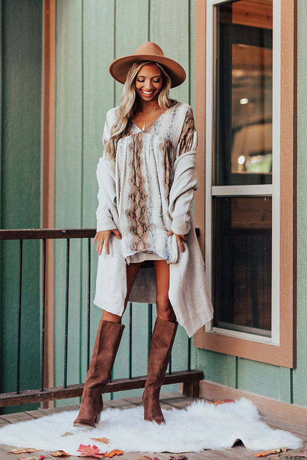 Looking For Love Snake Print Babydoll Dress In Grey
