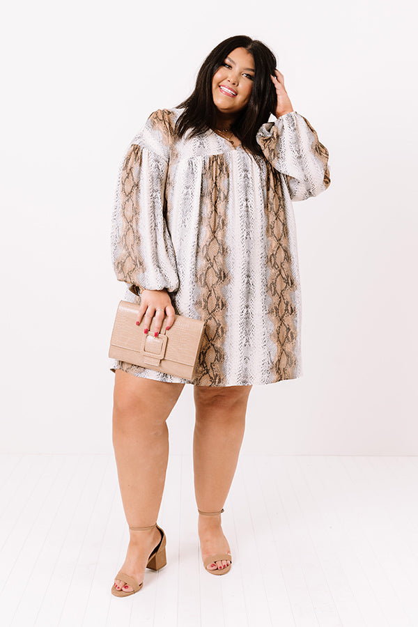 Looking For Love Snake Print Babydoll Dress In Grey Curves