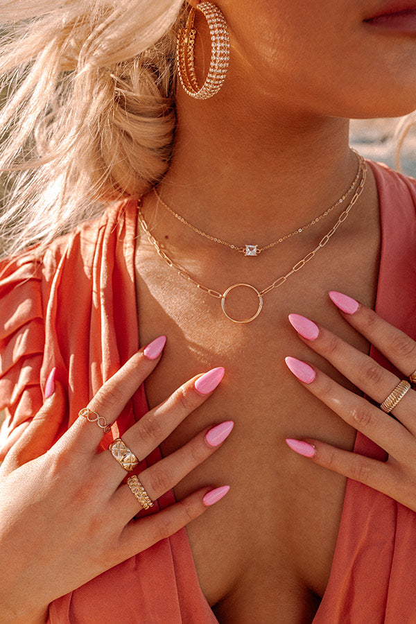 If you're looking for luxury, then look no further! This upscale necklace features two layered pieces: a dainty choker with a small rhinestone charm and a longer paperclip chain with a thin gold hoop!