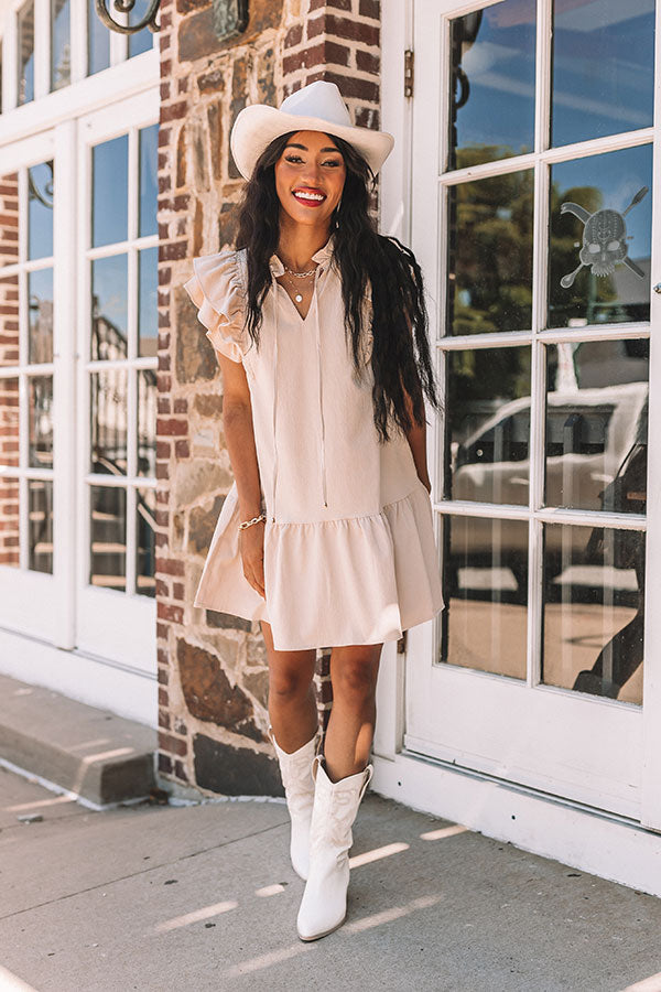 - A flowy yet flattering silhouette that ends in a mid-thigh length hemline