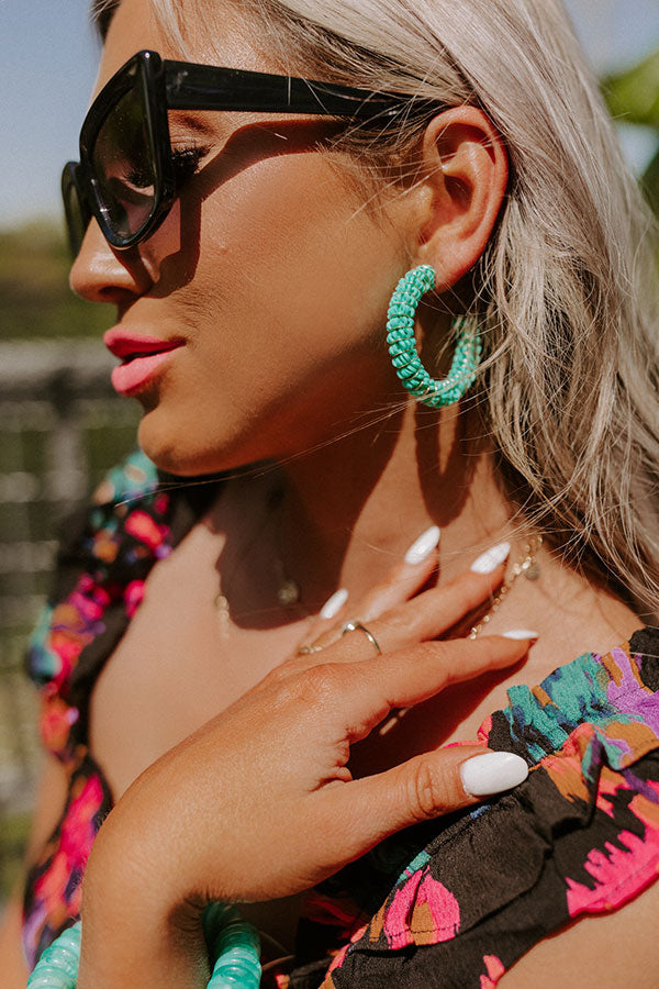 Add a sassy finish to your look with these trendy earrings featuring turquoise twisted beaded hoops!