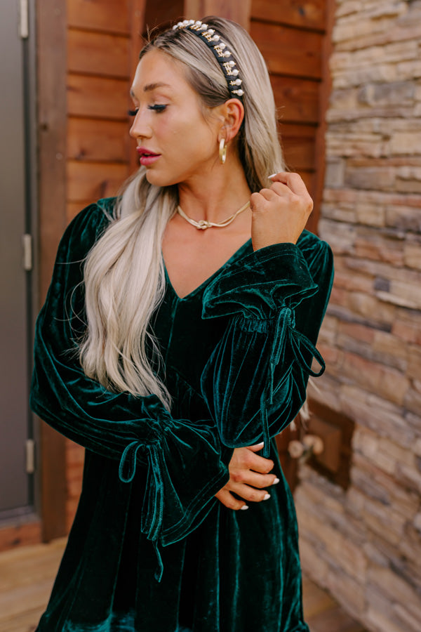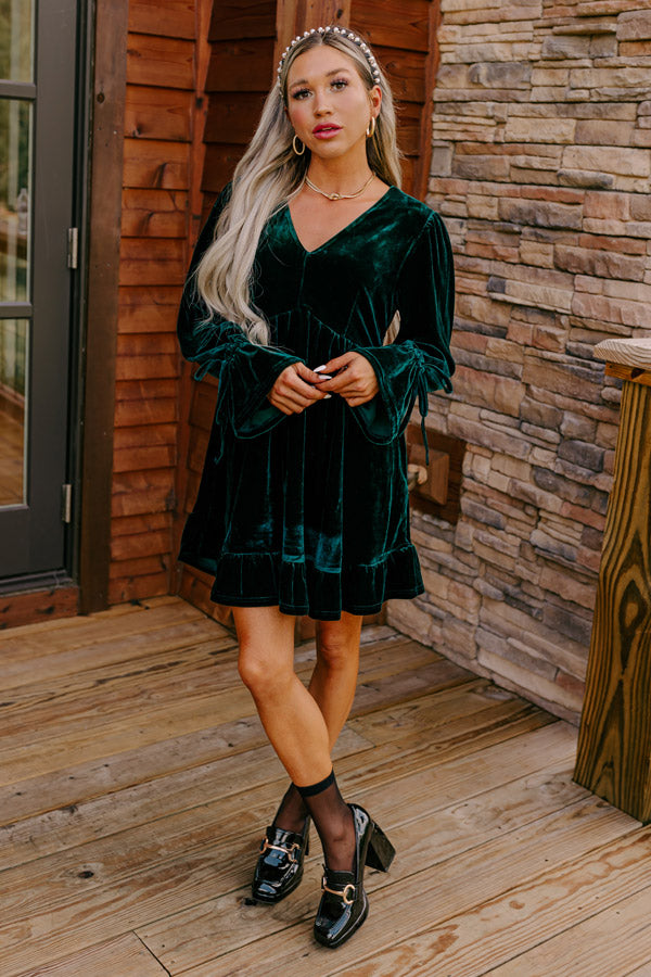Lost In A Novel Velvet Mini Dress In Hunter Green
