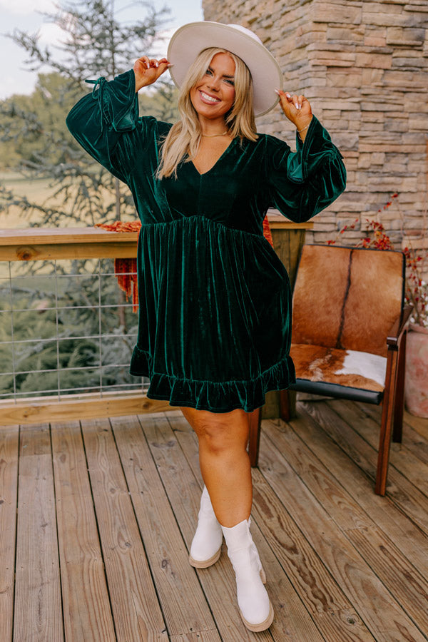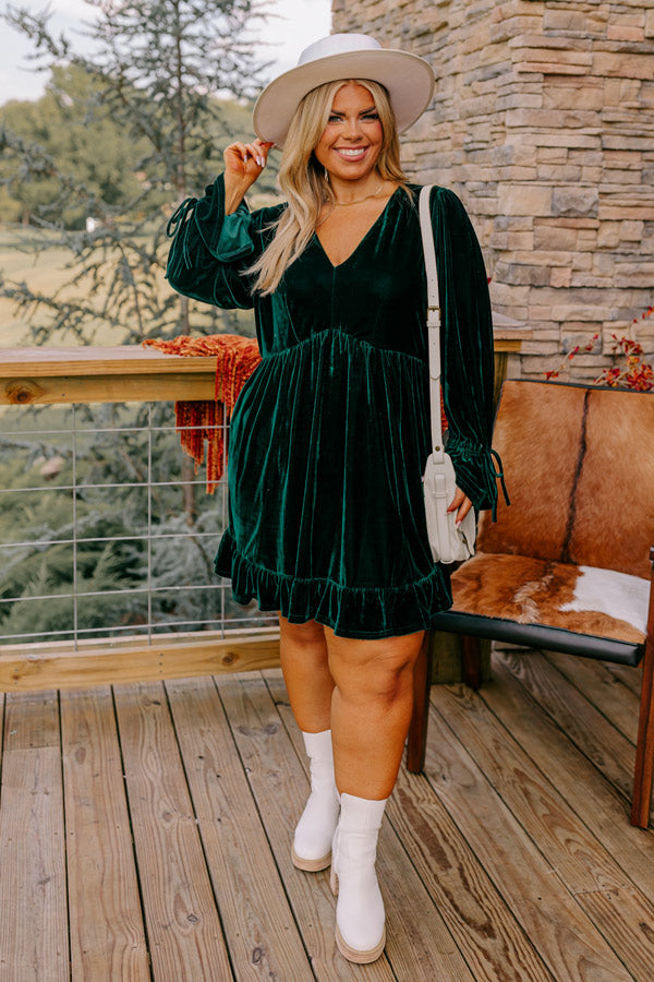 Lost In A Novel Velvet Mini Dress In Hunter Green Curves
