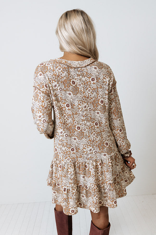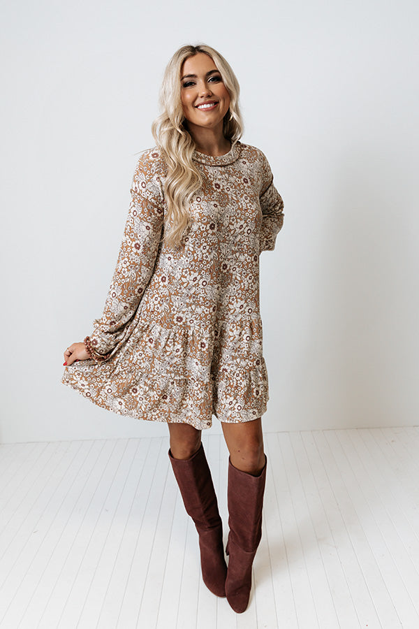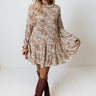 You are sure to be lost in sweetness when you wear this adorable neutral hued shift dress featuring lightweight flowy material patterned with a cream hued floral print, a high rounded neckline, long loose sleeves with fitted cuffs, and a relaxed silhouette that falls into a peplum bottom with an uneven mid-thigh length hemline!
