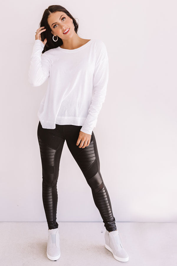 There is no better piece to "lounge about" in than this white top featuring a high rounded neckline, long sleeves, a twist back a keyhole cutout, lightweight material, and a relaxed bodice with a thick straight hemline! You can dress this simple piece down with some black leggings, grey sneaker booties, and a large leopard tote, or you can dress it up for a fall event when you style it under our "Mountain Valley Plaid Vest in Wine" with some black flares, our "Vintage Vibes Felt Hat in Tan," and "The Seraphina Faux Leather Wedge in Brown!" Measurements