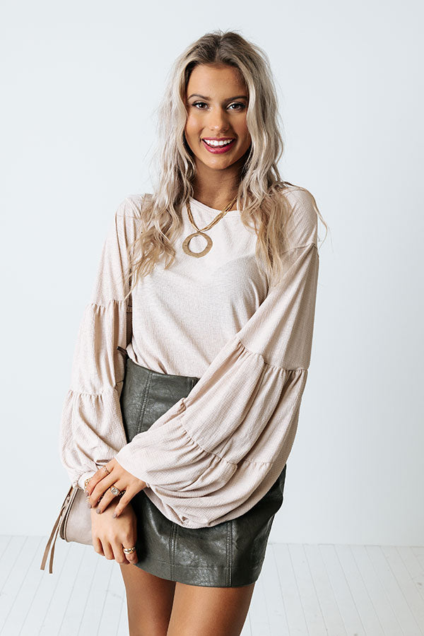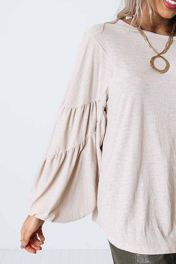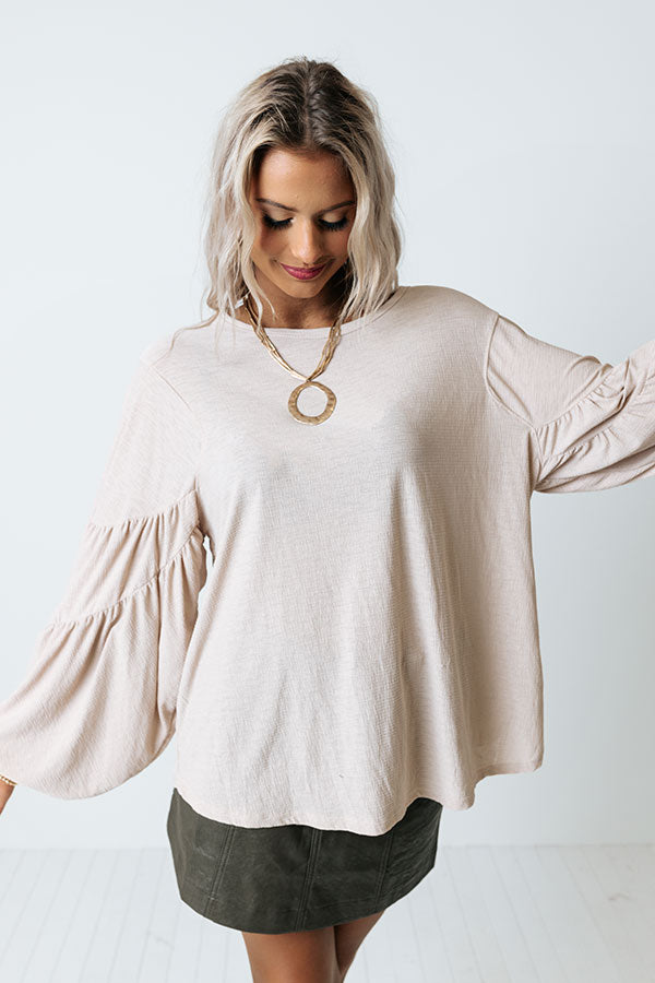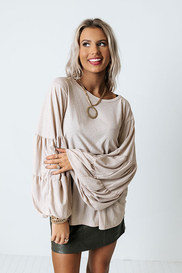 Our light taupe colored casual cute 'Love And Joy Shift Top' is basic but no less beautiful with its lightweight breezy material, rounded neckline, long oversized tiered bubble sleeves, and relaxed silhouette that falls into a rounded hemline!