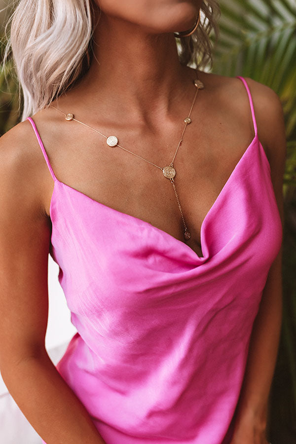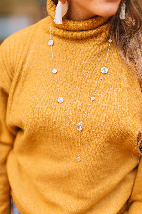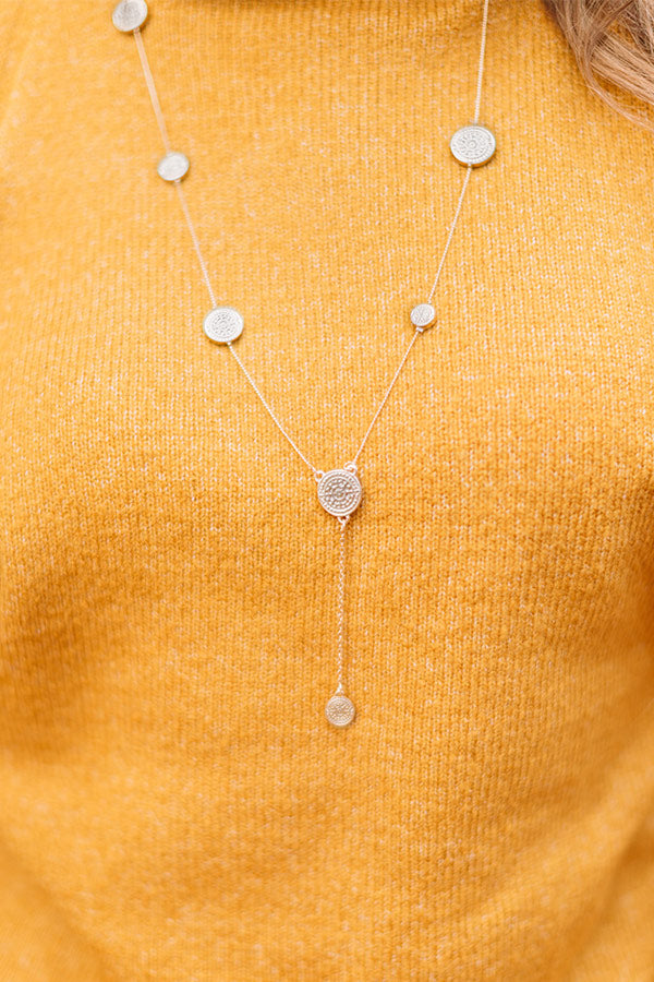 Step up your fall jewelry style with the "Love Game Necklace" featuring a long dainty gold chain with textured circle charms of various sizes!
