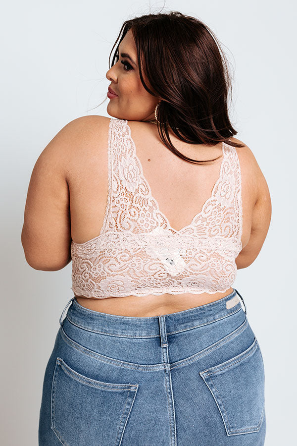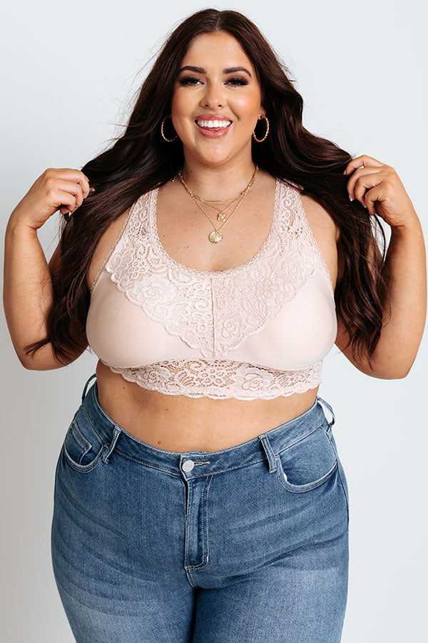 Plus Size - Add a flirty layer and additional coverage to any look with our femme natural colored 'Love In Lace Bralette' featuring gorgeous lace detailing, a scooped neckline, wide shoulder straps with a deep v-cut neckline, and a flattering silhouette that ends in a straight hemline! This bralette comes with removable padding.