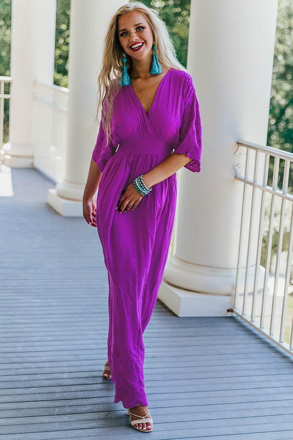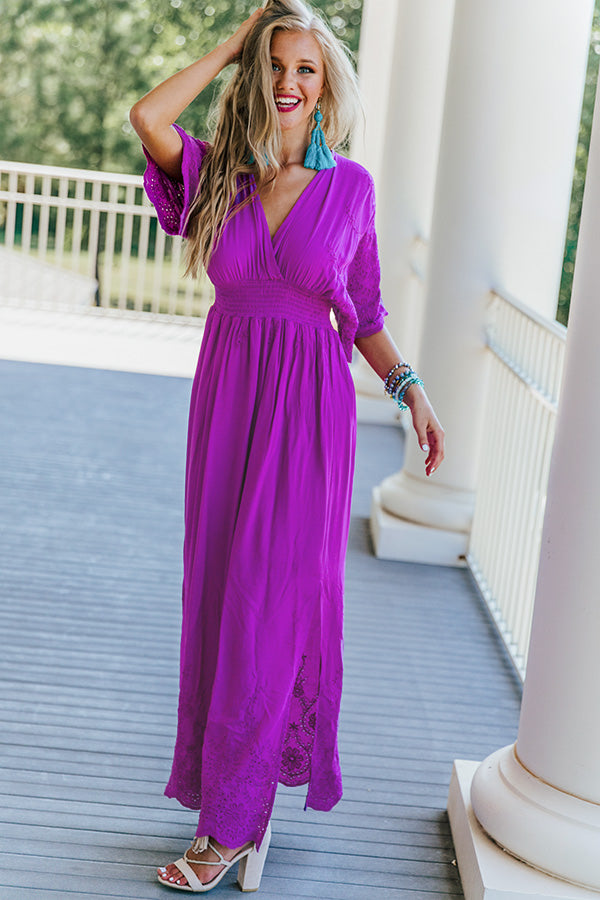 One look at this marvelous maxi, and it was love at first sight! The "Love In The Air Maxi Dress" has a v-cut surplice bodice, crochet pierced kimono sleeves & a smocked elastic waist that falls into a maxi length skirt with a crochet pierced hem. Add a pop of color to your look with a few turquoise accessories, & step out in style in this must-have maxi!