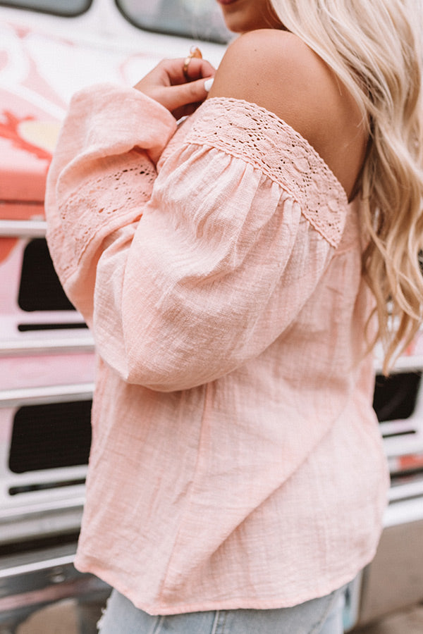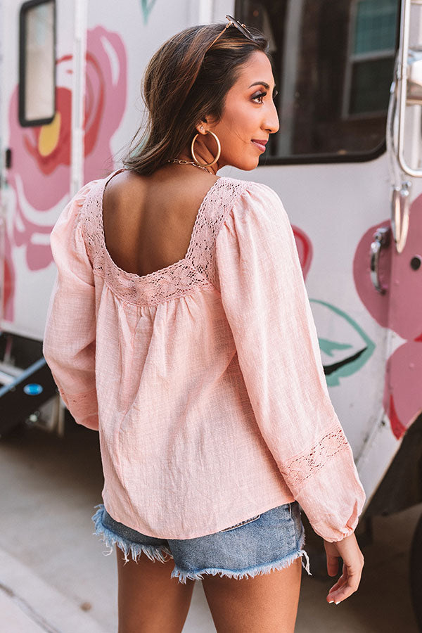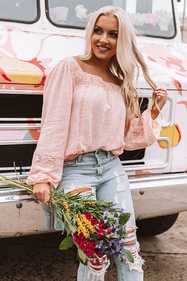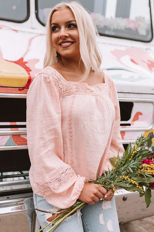 Live life colorfully in our darling peach colored "Love Island Shift Top" featuring lightweight material with subtle crinkled texturing, intricate crochet detailing throughout, a square neckline and upper back, long loose bishop sleeves with fitted elastic banded cuffs, and a relaxed silhouette that falls into a rounded hemline! This cutie styes perfectly with some distressed ankle skinnies and neutral wedges, but you can also wear it with some frayed denim shorts, "The Tipton Espadrille in Grey," our "All Caught Up Headband In Grey," and our "Spanish Coast Fringe Crossbody in Grey!"