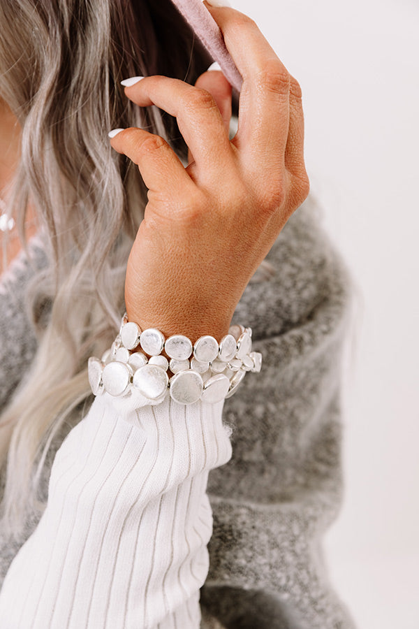 We have no doubt you will love this adorable bracelet set to much with its three stretchy silver circle beaded pieces!