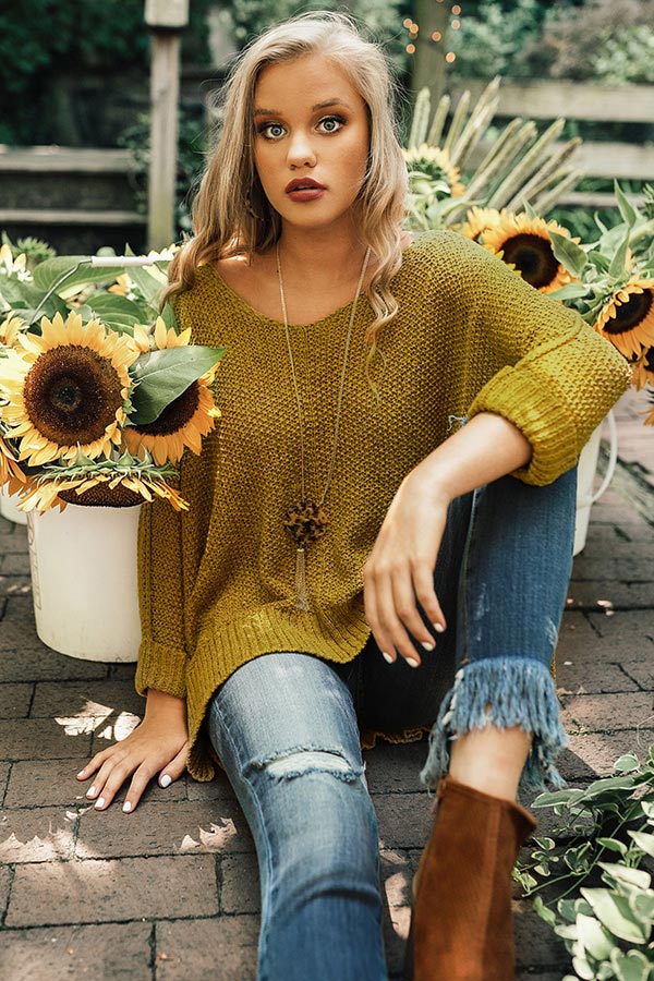 Staff favorite alert! We absolutely love this knit sweater and we mean it! This sweater is the perfect lightweight knit for any season. Show off your cutest bralette with this wide v-neck and style it with your favorite skinnies or tuck it into shorts for a casual cute look. The sleeves are sewn into a cuff and the hi-low detail adds an extra level of comfort. Measurements