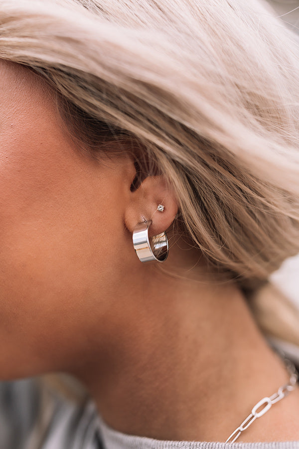 Keep your weekend style casual with these basic earrings featuring small wide silver hoops!