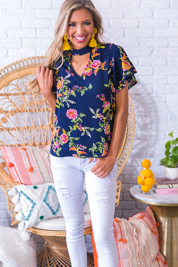 Love Poem Floral Shift Top in Navy