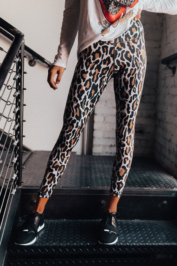 Our sporty black "Love To Laugh" active legging features soft four way stretch material with a figure hugging fit, moisture wicking, a bold two toned leopard print pattern, a high elastic waistband for tummy control, and a sleek pant silhouette that falls into straight ankle length hems! This adorable athleisure piece styles perfectly with a variety of sports bras or tank tops and trendy sneakers for the ultimate two piece workout set!