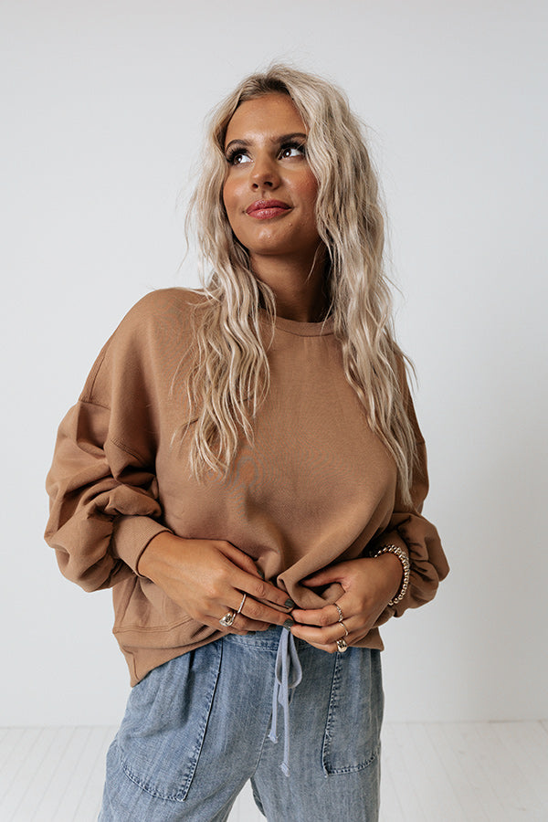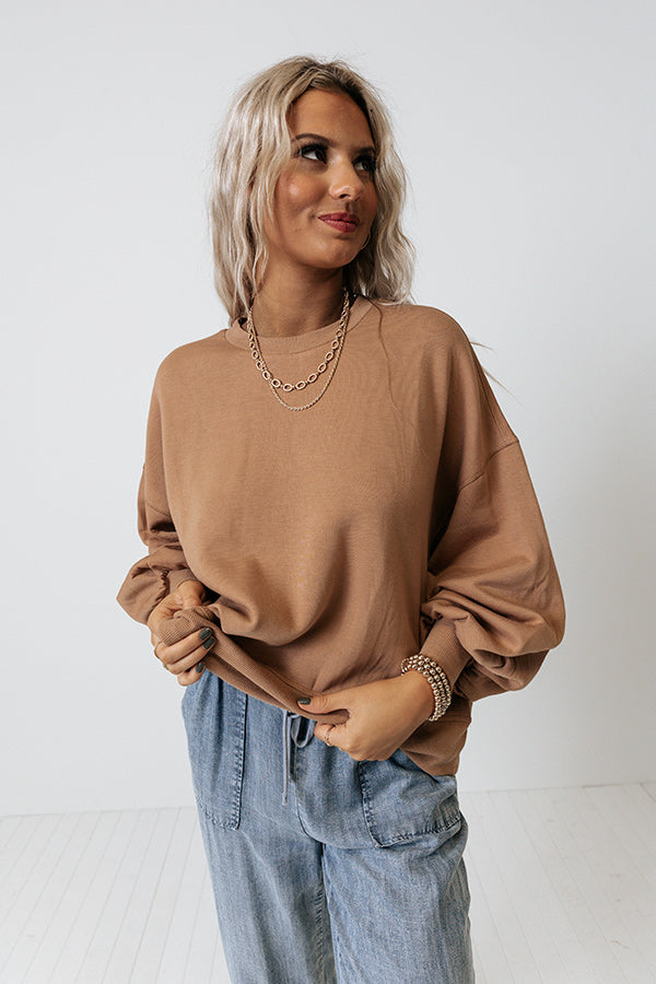 Chill out in style with this basic but lovely brown sweatshirt featuring soft lightweight cotton blend material, a rounded neckline, long loose sleeves, and a slouched silhouette that ends in a straight hemline! Measurements