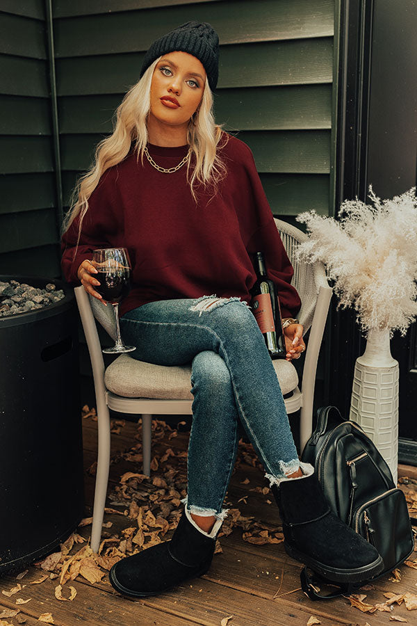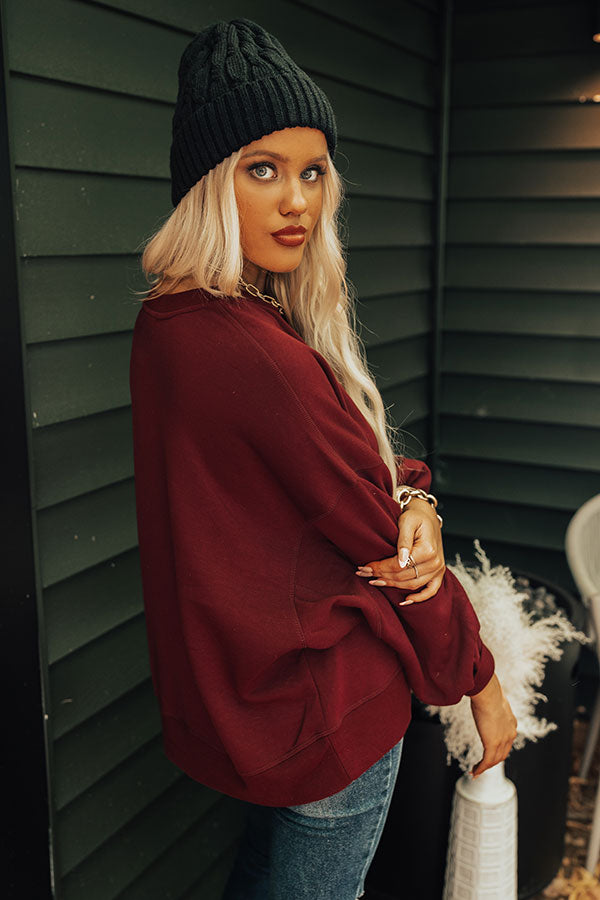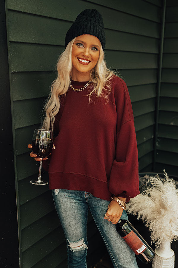 Chill out in style with this basic but lovely maroon colored sweatshirt featuring soft lightweight cotton blend material, a rounded neckline, long loose sleeves, and a slouched silhouette that ends in a straight hemline! Measurements