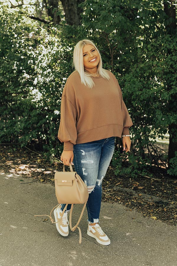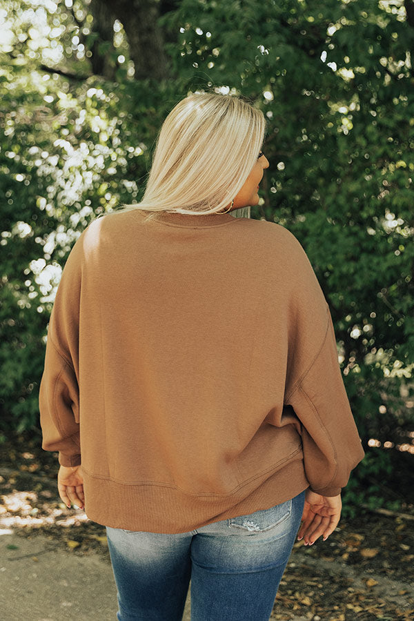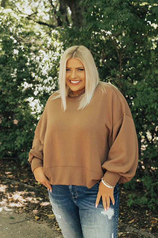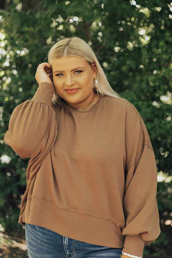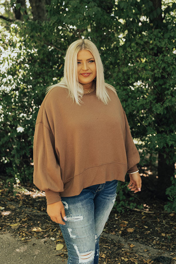 Plus Size - Chill out in style with this basic but lovely mocha colored sweatshirt featuring soft lightweight cotton blend material, a rounded neckline, long loose sleeves, and a slouched silhouette that ends in a straight hemline! Measurements