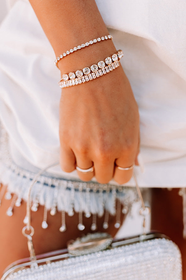 Add a dreamy finish to your look with this lovely bracelet set of three shimmering rhinestone strands!