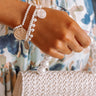 You will be one lovely lady when you accessorize with this luxe bracelet featuring three pearl strands with gold coin charms and a magnetic closure!