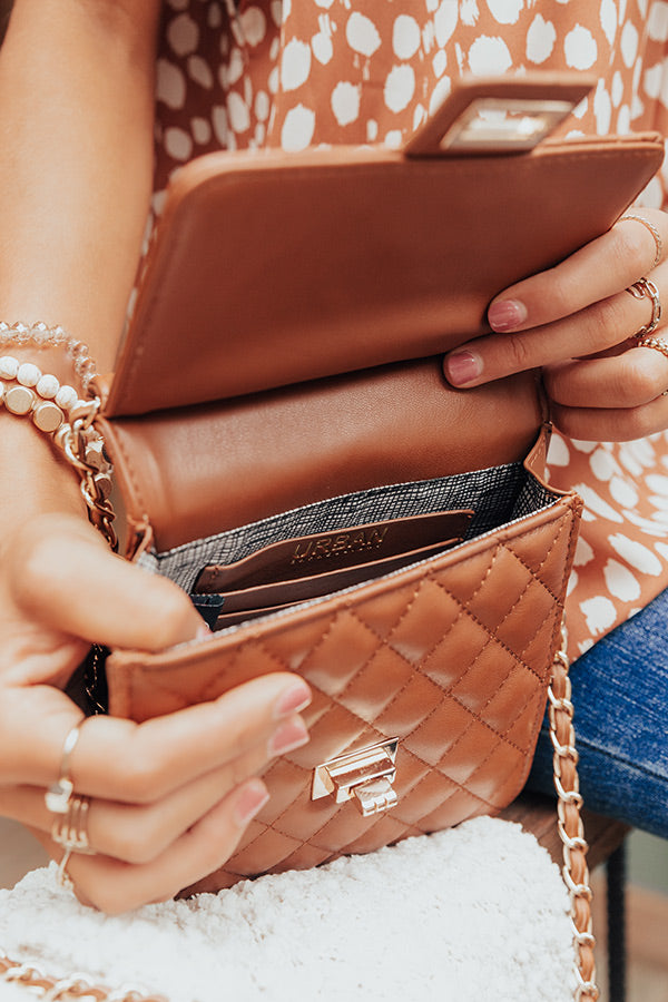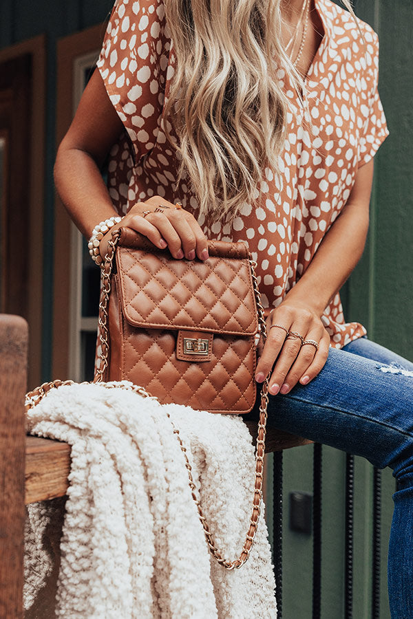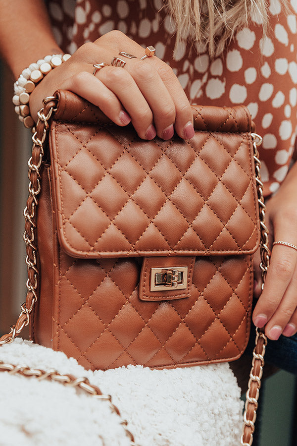 Behind every successful women is a fabulous handbag like our dainty cinnamon colored "Lovely Night" crossbody featuring sleek faux leather material with quilted texturing, a gold chain shoulder strap, and a spacious rectangular silhouette with a lap turn lock closure and additional inside pockets!