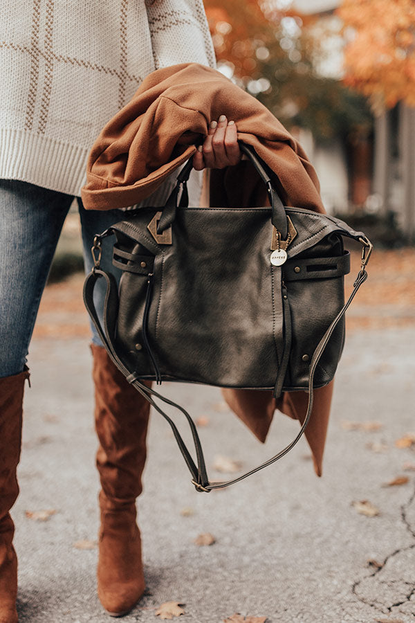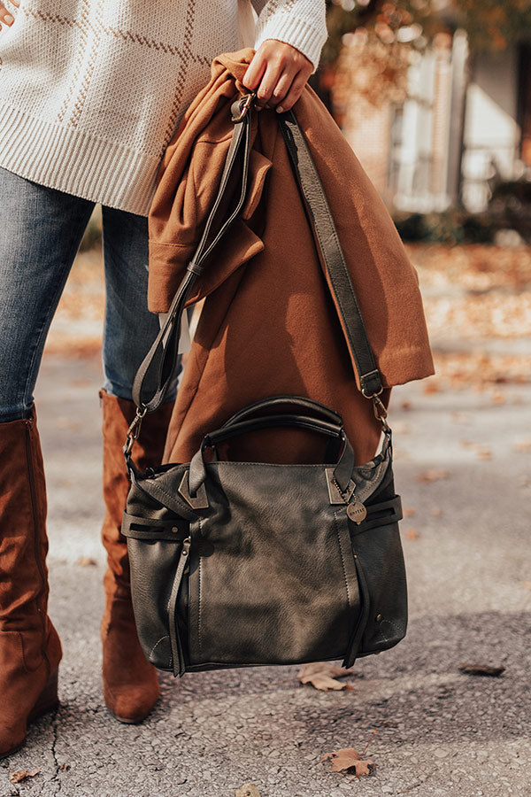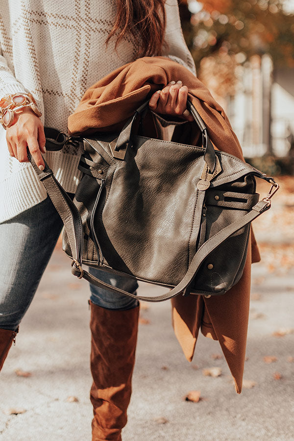 Tote around in style with our stunning martini olive colored "Lovely Novella Tote" featuring sleek faux leather material, two shorter tote handles, an adjustable and removable crossbody strap, antique god hardware, and a spacious lightweight fully lined pouch with a zip closure and additional inside pockets!