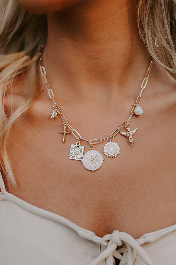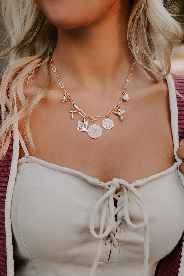- Add a touch of charm to your outfit with this lovely necklace. The delicate dangling charms make it a simple yet stylish accessory for any occasion. Whether you're dressing up or keeping it casual, this trendy piece is perfect for adding a sweet detail to your look.