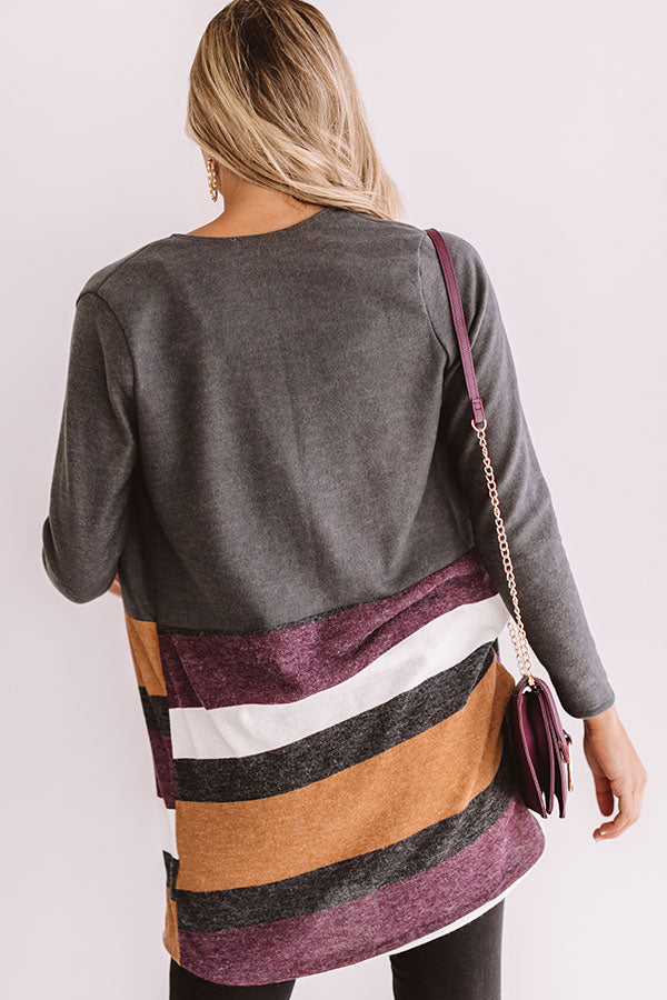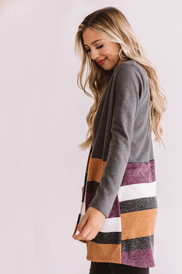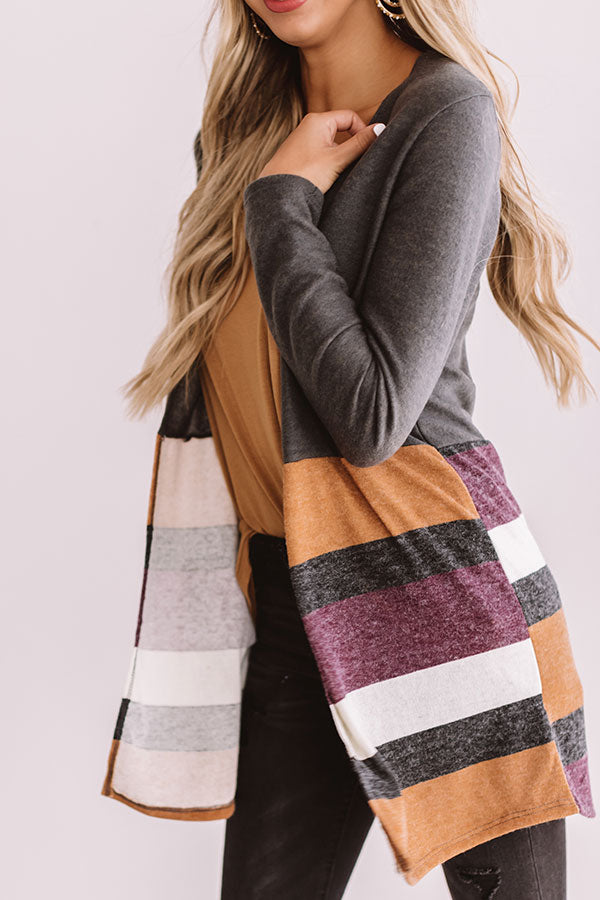Add a finishing touch and a bit of warmth to any look with the "Loving Manhattan" olive cardigan featuring fall colored stripes, a mid-thigh length hem, long fitted sleeves, soft material , and an open front! This autumn essential is gorgeous styled over a neutral tank with distressed black jeans, a dark nude cutout wedge, and a maroon crossbody, but it can also be paired with "The Vivienne Distressed Denim Skirt in White," a maroon faux suede hat, and "The Asher Perforated Bootie in Camel" for an ideal chilly weather OOTD! Measurements