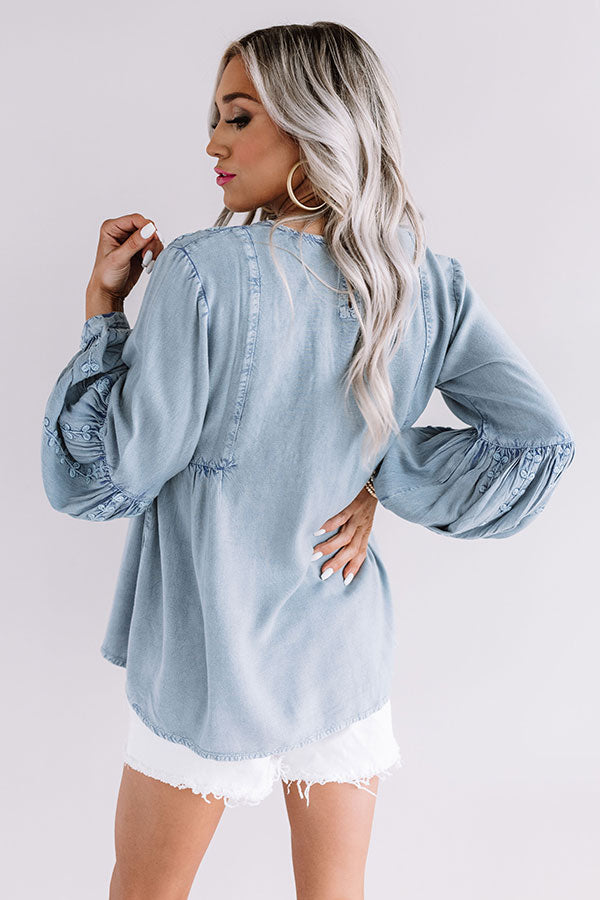 Loving Soul Embroidered Chambray Top