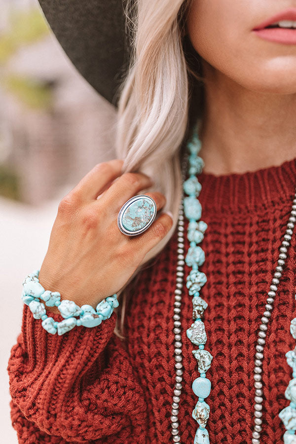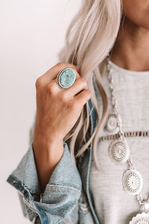 Jewelry is the exclamation point of your outfit, so make a statement with the "Loving You Softly" ring featuring a large turquoise stone inside a gorgeous silver setting!