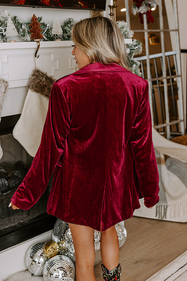 Luxe Lane Velvet Blazer In Wine