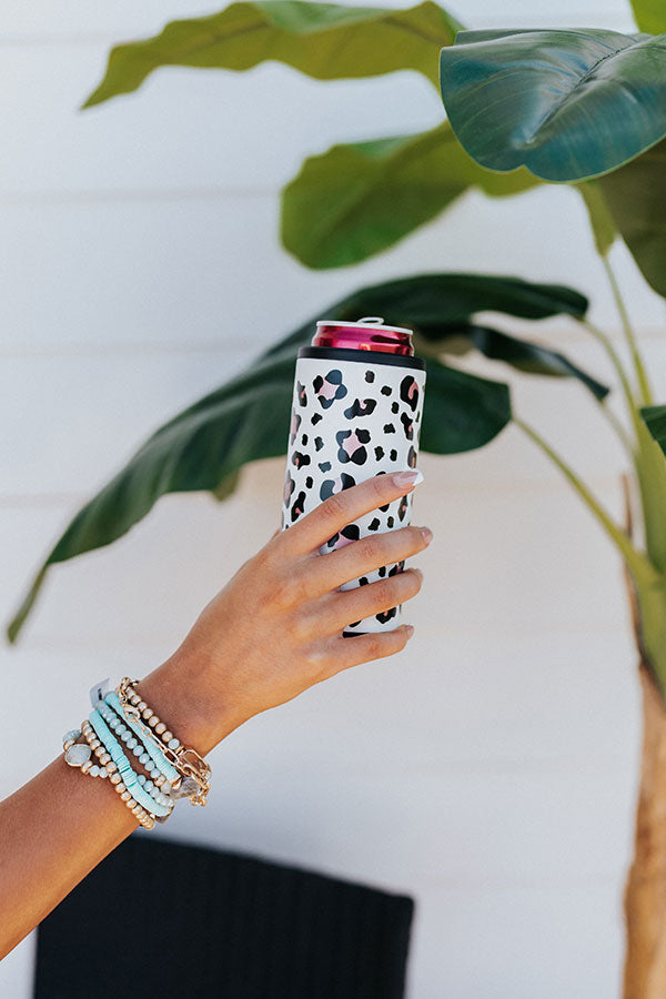 Take a walk on the wild side with our purrrfect leopard print skinny can cooler! Rose gold and black spots bring style and sophistication to this untamable trend.