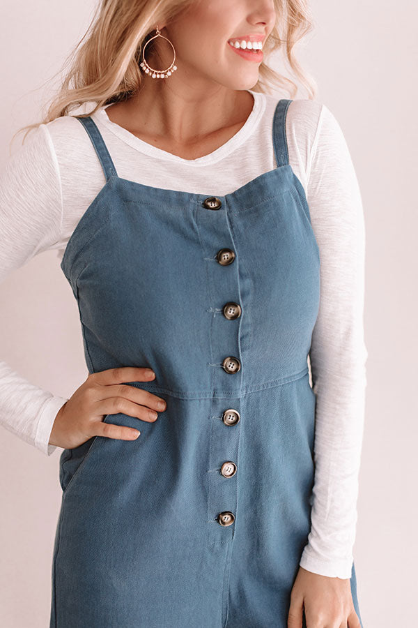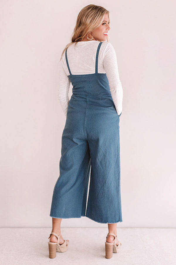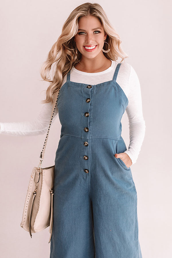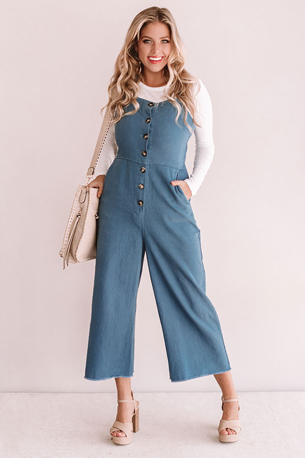 Walk in to the week with a macchiato and marvelous style, wearing this must-have autumn sky culotte jumpsuit! The "Macchiato In The City Jumpsuit" has adjustable straps, and a fitted button-down bodice that falls into a wide-cut culotte pant with side pockets, and a cropped frayed hem! Complete your look with a long sleeve fitted tee and a felt hat, for a posh put-together look everyone is sure to FALL for!