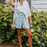 Step out in style with our cute and flowy light blue beach shorts. Incredibly light and breezy with a white floral print, wide smocked waistline, and straight upper-thigh length hemlines, they're great for... well, pretty much any sunny day! Pair them with swimwear, a cute tank, or cropped tee for the perfect summer OOTD.
