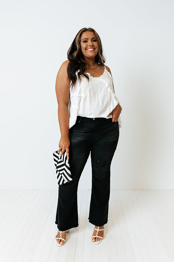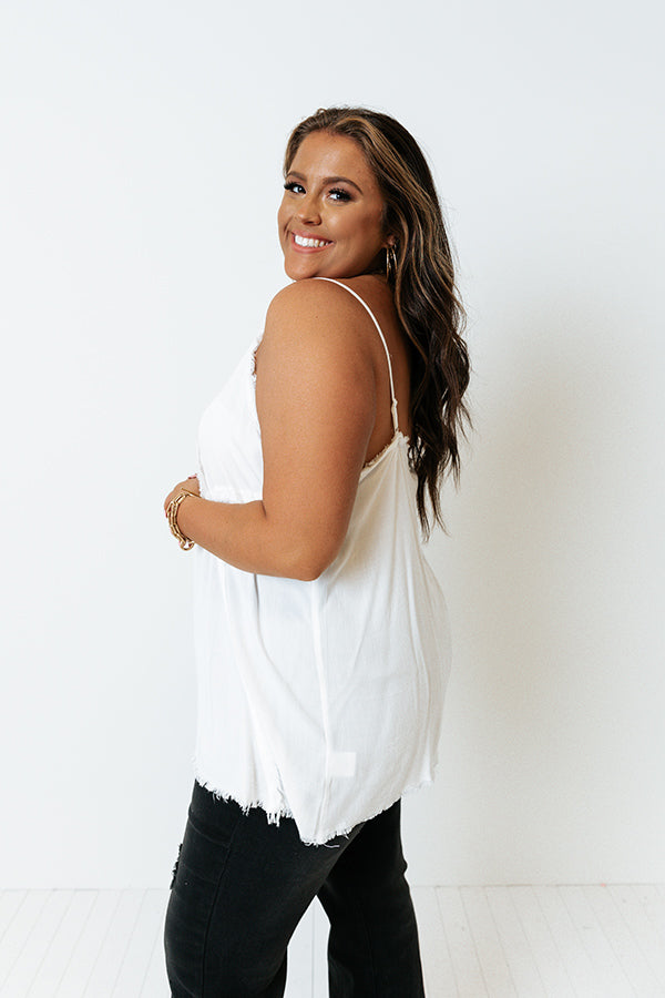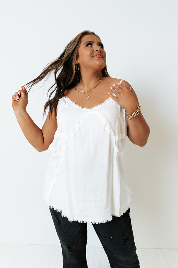 Believe us when we say this casual cute white plus size tank is made for wearing in the sunshine with its lightweight material, frayed trim detailing, a v-cut neckline with adjustable spaghetti straps, and a relaxed silhouette that falls into a straight hemline!