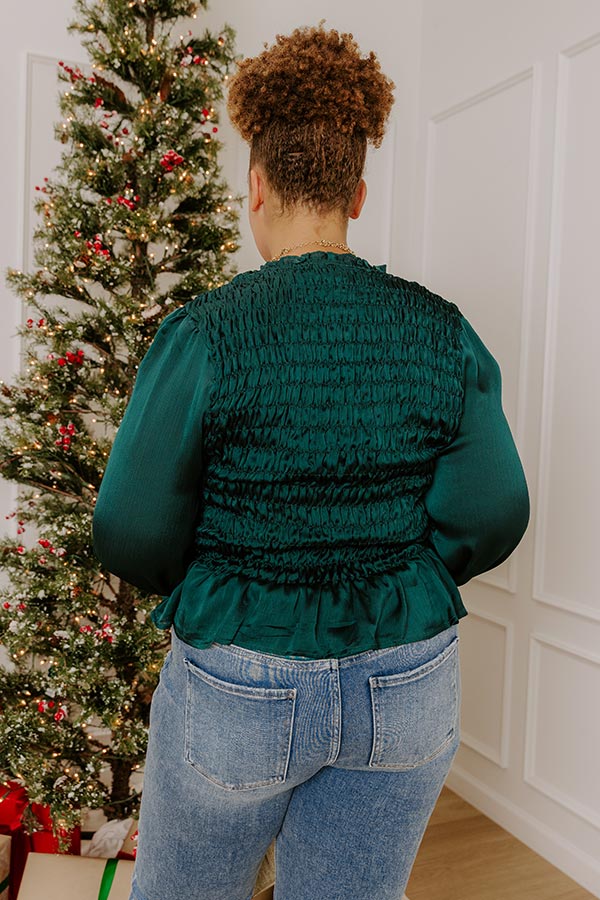 - Add a touch of elegance to your outfit with this chic satin top. Its smocked design and ruffle accents create a stylish, flattering look for an elevated vibe.