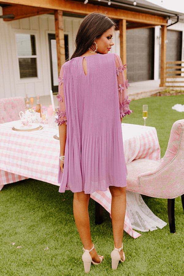 – Lightweight pleated material with an attached full sheer chiffon slip