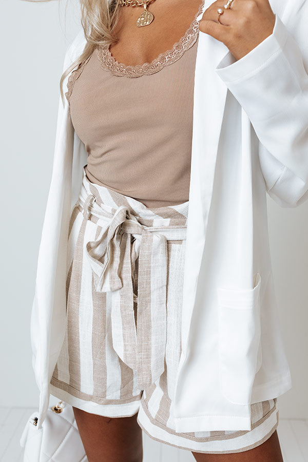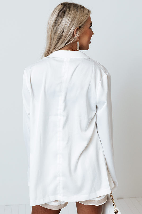 Channel your inner girl boss in this darling white blazer featuring sleek lightweight material, long loose sleeves, a collared neckline, accent side pockets, and a flattering open front silhouette that ends in a straight hemline! Measurements