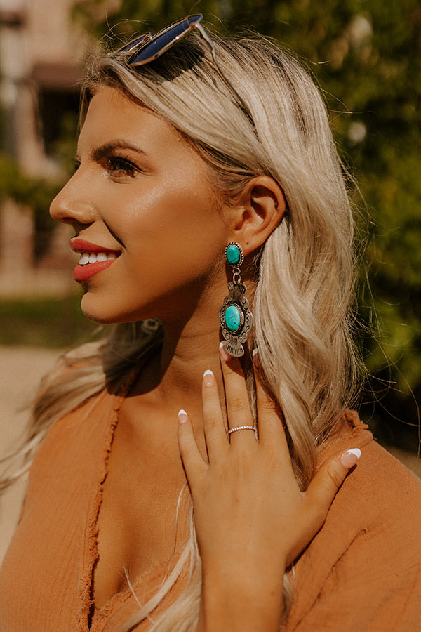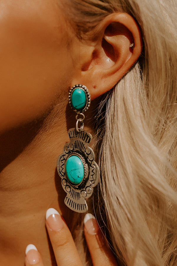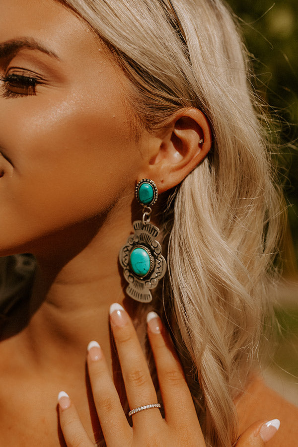 Make a statement with our beautiful 'Magnolias And Mimosas Earrings' featuring oval turquoise faux stone studs and an oversized dangling vintage silver concho with an oval faux turquoise faux stone center!