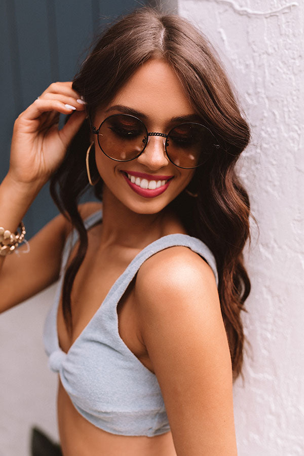 Enjoy mai tais in Malibu in style with these chic sunnies featuring black circle frames and dark tinted lenses!