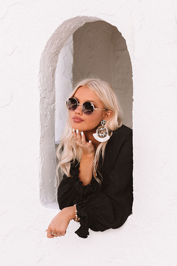 Enjoy mai tais in Malibu in style with these chic sunnies featuring gold circle frames and black tinted lenses!