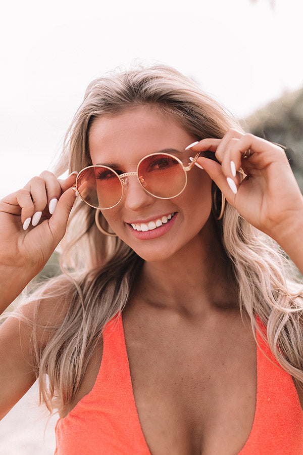 Enjoy mai tais in Malibu in style with these chic sunnies featuring gold circle frames and orange ombre tinted lenses!