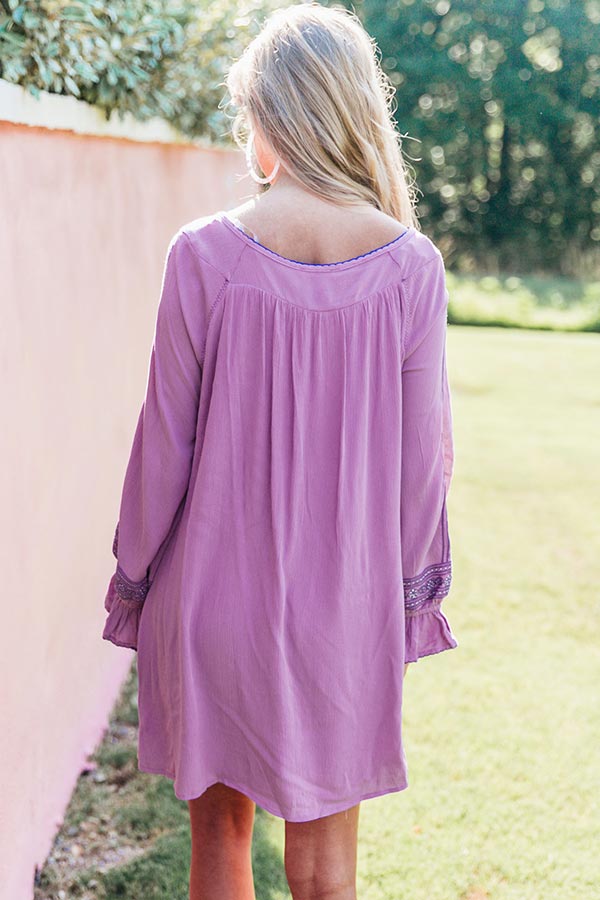 Make It A Mimosa Embroidered Shift Dress in Purple
