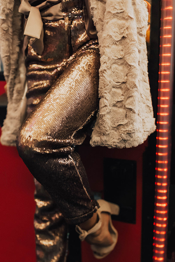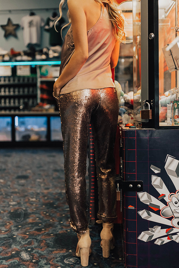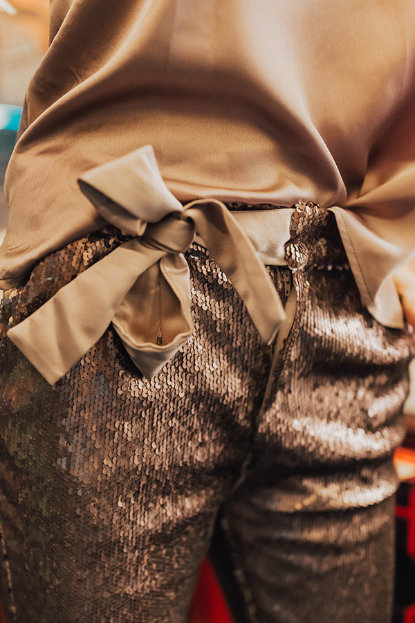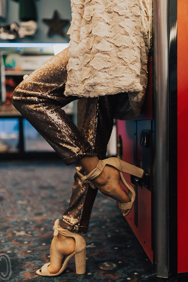 Make It Pop High Waist Sequin Pants in Latte