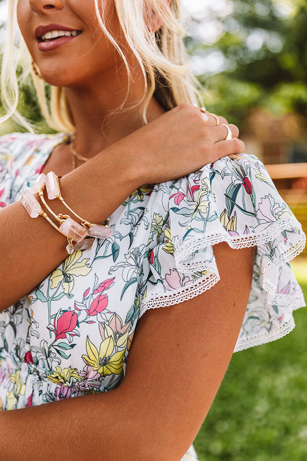 Make way in your wardrobe for this wonderful white dress featuring lightweight flowy material patterned with a pretty hot pink and yellow hued floral print, a v-cut neckline, ruffled cap sleeves, a keyhole accented upper back with a button closure, a flattering cinched waistline, and a relaxed silhouette that falls into an uneven mid-thigh length peplum hemline! Measurements