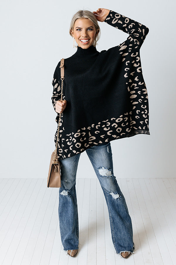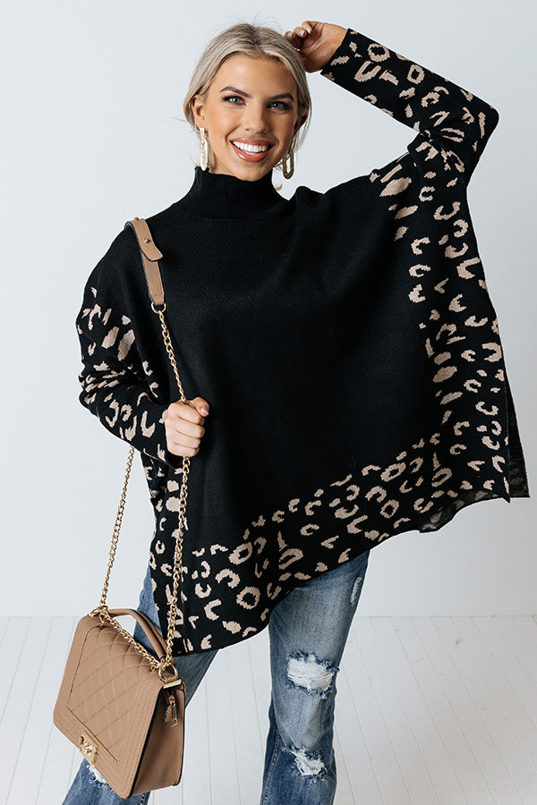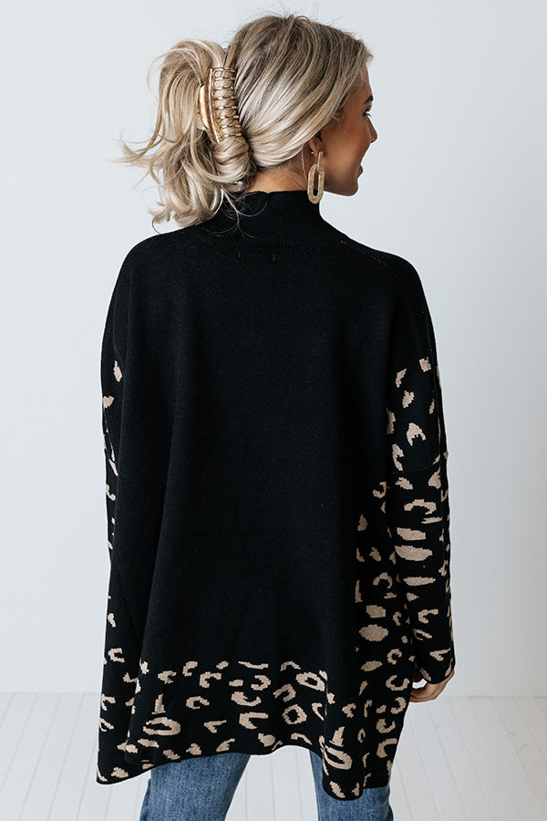 Upgrade your fall style game with our adorable black 'Make Ways For Wonderful Sweater' featuring soft knit material patterned with a light neutral hued leopard print, long loose sleeves, a rounded neckline, and an ultra draped silhouette that falls into an uneven tunic-length hemline with accent side slits! Measurements